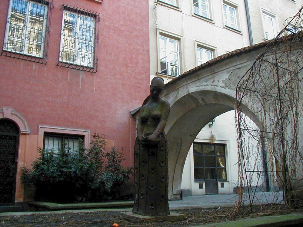 Rzeźba na podwórku - ulica Celna - "Kwiaciarka" - aut. Irena Nadachowska - rzeźba trafiła tu w 1975 roku.