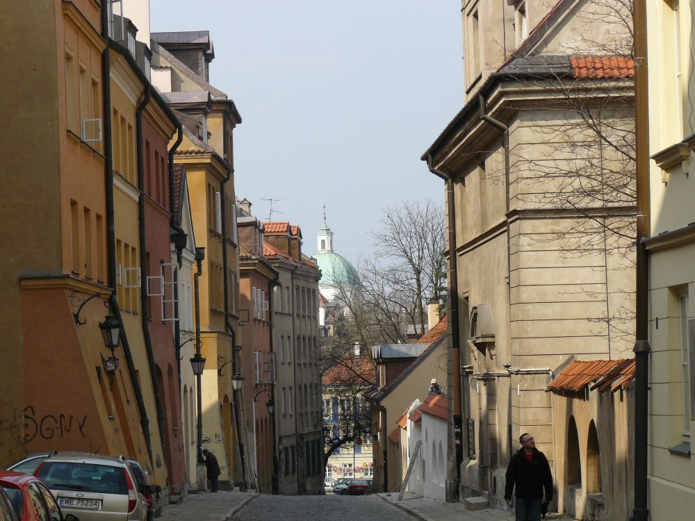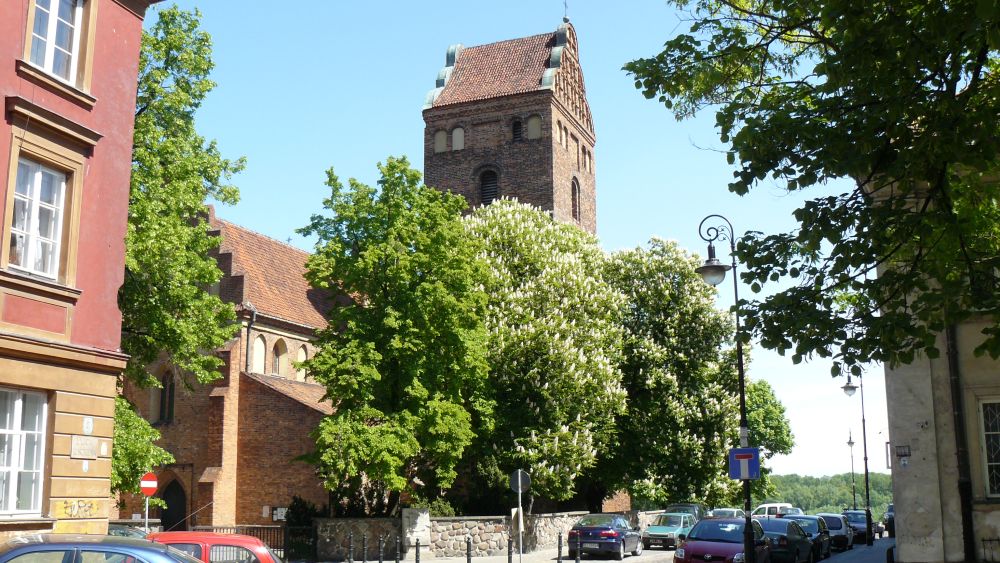 Fragment ulicy Kościelnej z widokiem na najstarszy warszawski kościół (N.M.P.)