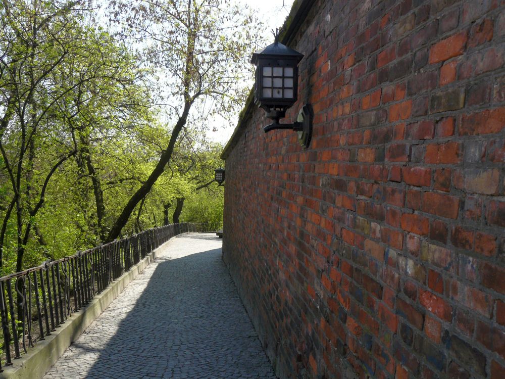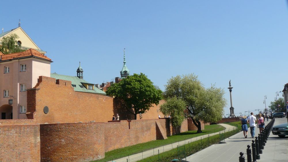 Podwale, fragment murów obronnych z widokiem na kolumnę Zygmunta