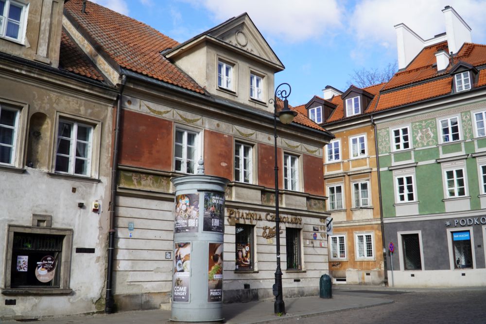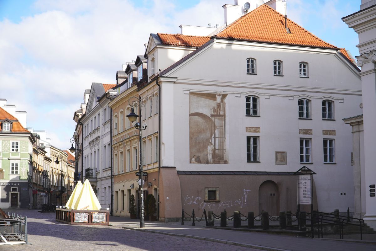 Boczna elewacja zasłonięta niegdyś neogotycką galerią kościoła Dominikanów - przedstawia fresk upamiętniający odbudowę Starówki - autorstwa Bohdana Urbanowicza. W chwili obecnej (październik 2013) całkowicie odrestaurowana według pierwowzoru. Odtworzeniem fresku kierowała Pani Ewa Moroz - konserwator dzieł sztuki.