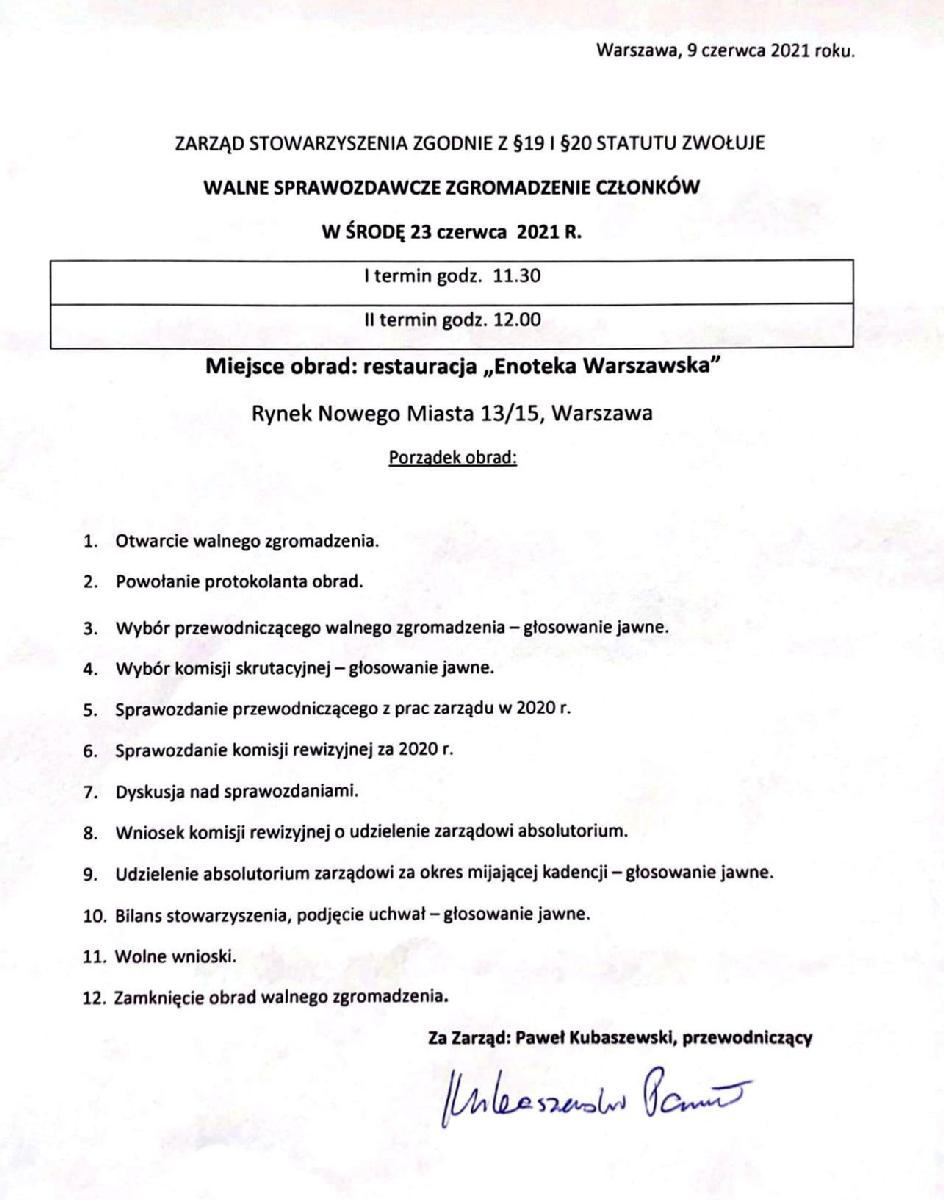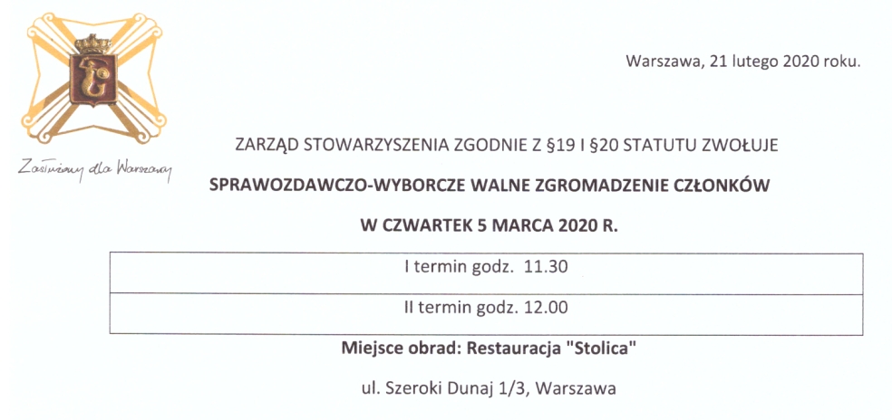 W dniu 09.06.2020 przedstawiciele Zarządu spotkali się z Zastępcą Prezydenta m. st. Warszawy Panem Robertem Soszyńskim. Propozycje przedstawione przez Zarząd stowarzyszenia, mimo trudnej sytuacji finansowej Warszawy zostały przyjęte ze zrozumieniem.