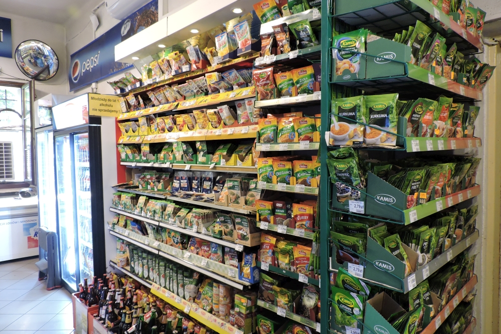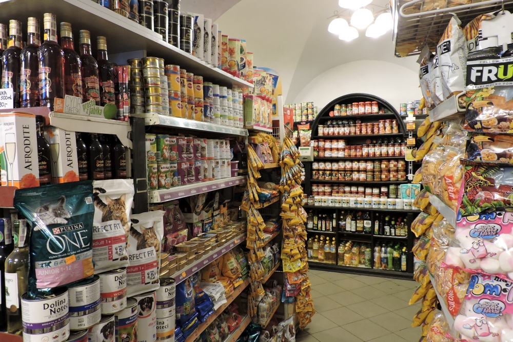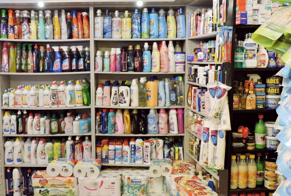Chemia gospodarcza, kosmetyki do codziennego użytku mają też swoje miejsce. I pies, i kot nie odejdą głodne bo i karmy wszelakiej dostatek. Tuż obok (osobne wejście) jest sklep warzywny, ze świeżą zieleniną. Panie kupują coś na zupę, panowie często z zupy rezygnują na rzecz markowego piwa.