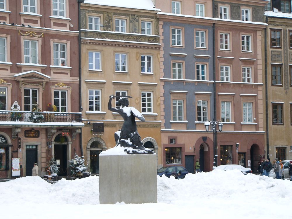 Syrenka w śniegu, co nie jest częstym zjawiskiem.