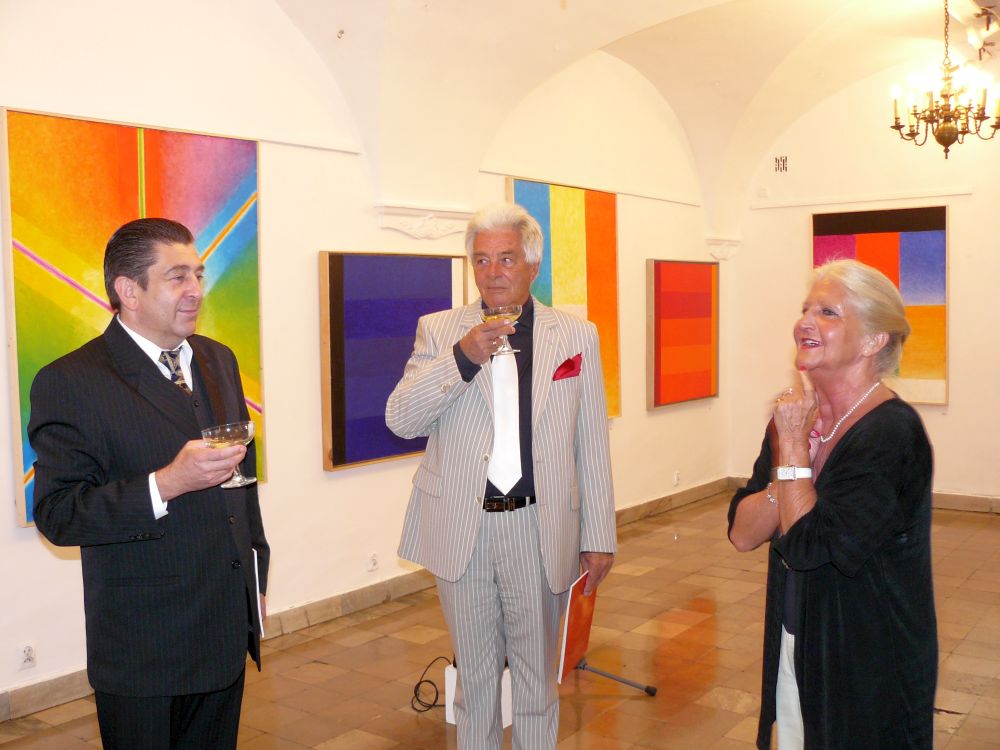 Honorowy dyplom i piękne róże dla Pani Miry Arens z okazji 35-lecia Galerii "Zapiecek". Kwiaty wręczają: przewodniczący Stowarzyszenia Roman Popowski i wiceprzewodniczący Janusz Lück