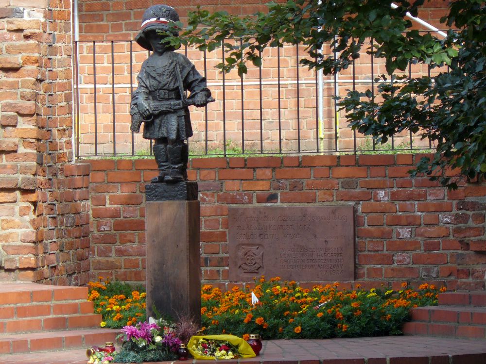 Pomnik "Małego Powstańca" przy murach staromiejskich ul. Podwale.