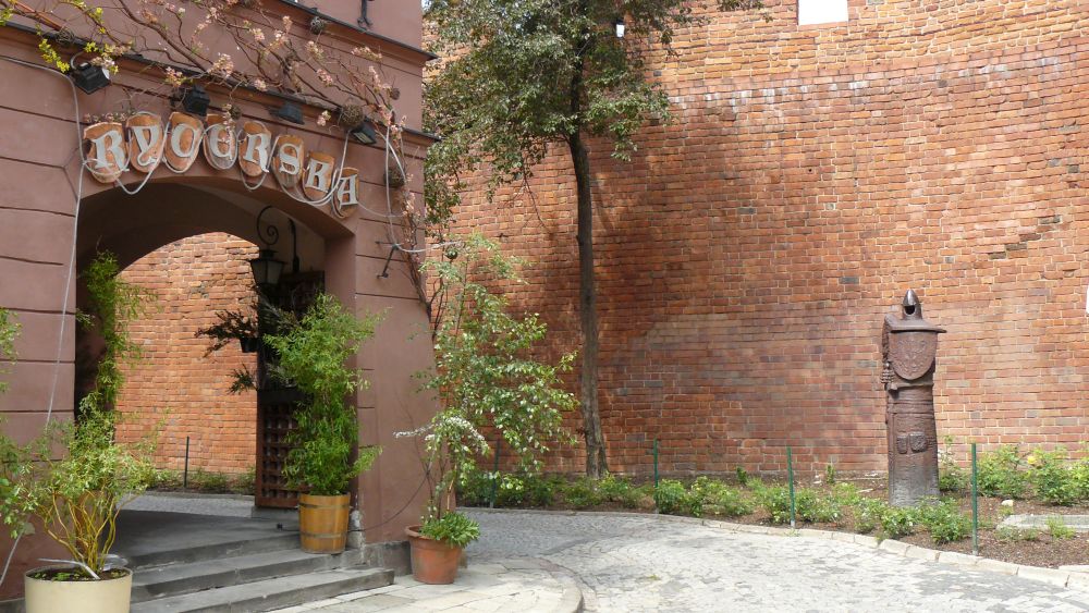 Restauracja "Rycerska" i rzeźba rycerza (tylko rzeźba przetrwała)