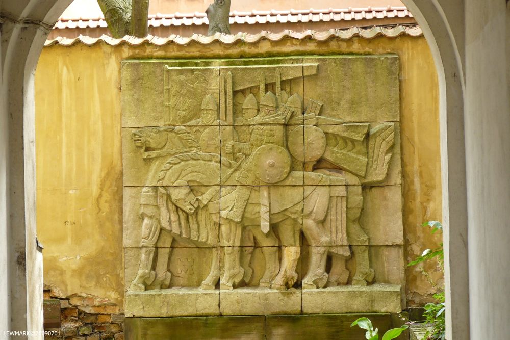 Płaskorzeźba "Mazowia" w podwórku na ul. Celnej 3, autor - Edmund Mikołaj Jankowski (1929-2009)