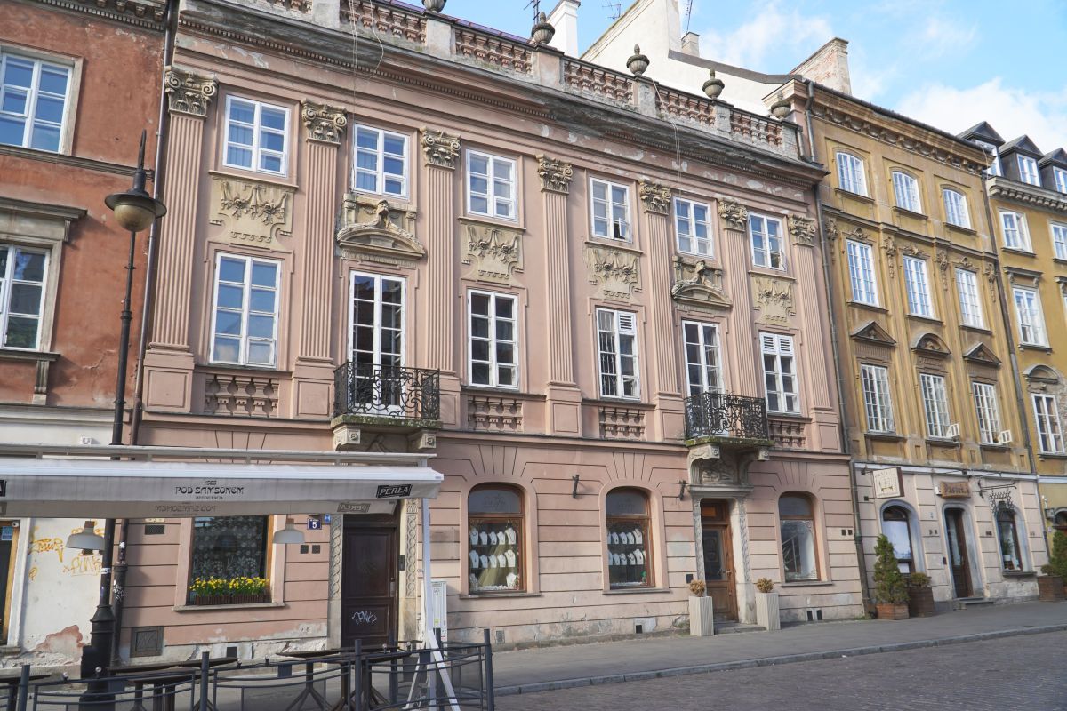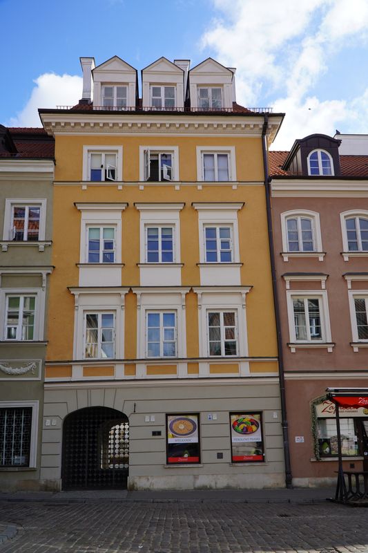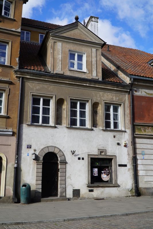 Kamienica narożna, trójosiowa, dwupiętrowa. Wybudowana ok 1740 r., (wg innych źródeł w 1753) dla Jana Gidelskiego kupca korzennego, rajcy miasta Starej Warszawy. W latach 1790-94 mieszkał tu architekt i malarz Innocenty Maraino *) scenograf Teatru Narodowego (Wojciecha Bogusławskiego).