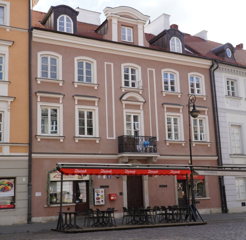 Spalona w 1944, odbudowana w latach 1951-55 pod kier. arch. Stanisławy i Jerzego Dutkiewiczów. Odtworzono facjatkę na dachu wg. rys. Vogla.
