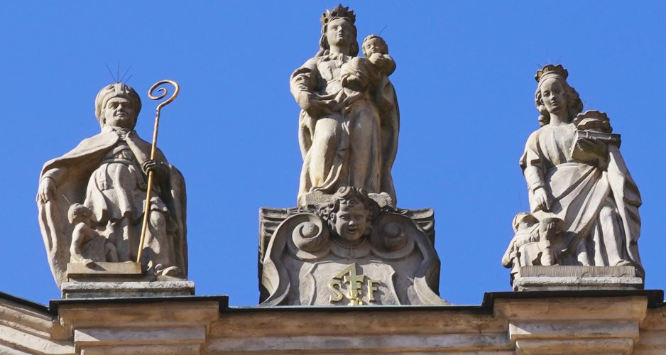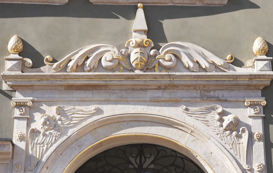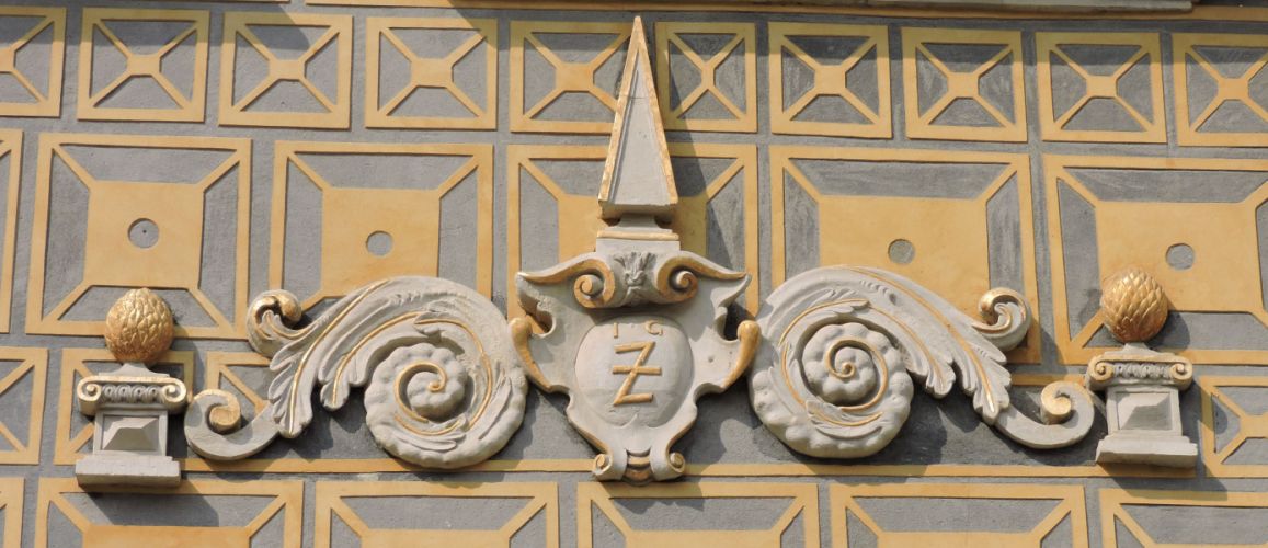 Fasada trójosiowa, manierystyczna sprzed 1628. Pod środkowym oknem I p. w okrągłej niszy kopia uszkodzonej w 1944 rzeźbionej głowy murzyna. Dach z wysoką latarnią, w której dwa okna i po środku drzwi na nowy balkon biegnący wzdłuż elewacji.